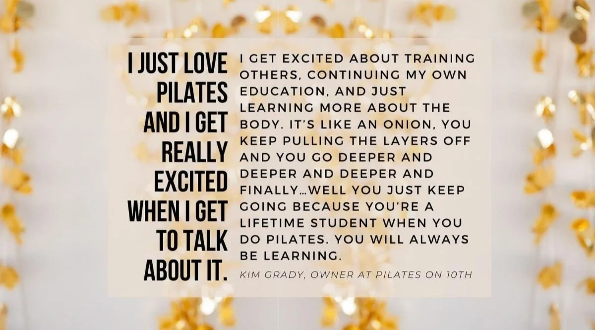 Community is everything at Pilates on 10th. I was so grateful as a client to be a part of it and I'm proud to continue building a community around Pilates now as the owner. I feel so lucky to be able to teach people to use their bodies in safe ways, and I just love it when they get to see proof that movement does heal–it’s true, it does! To know that I am helping my clients live a happier and healthier life where they are able to do the things that make THEM happy is the real reward!
